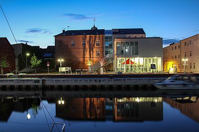 Wer es so richtig romantisch haben möchte, der rastet im „urigsten“ Restaurant des Hafens von Ueckermünde. Eingerahmt vom Turm des Schlosses und der St. Marienkirche, kann der Fotograf nicht an einem solchen Motiv zum Beginn der Blauen Stunden vorbei gehen.