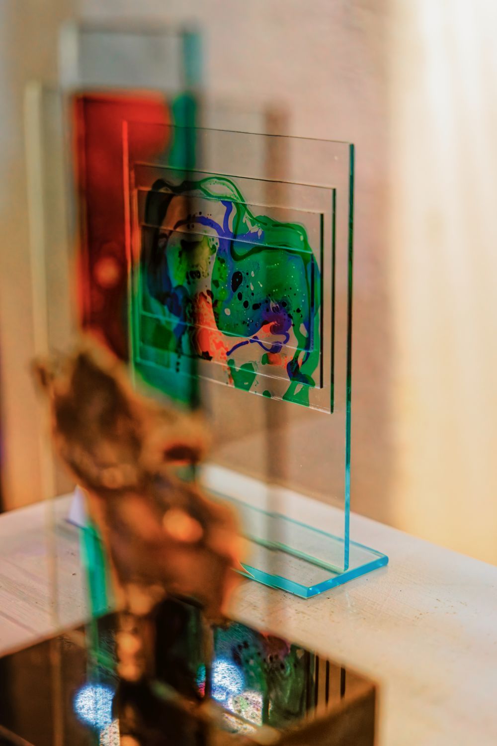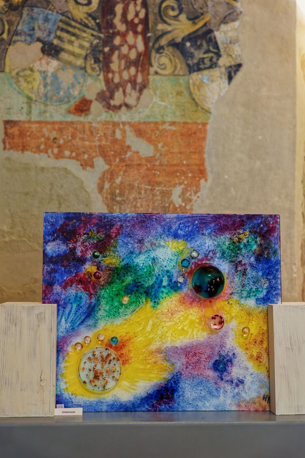 Parallel zu erleben sind Glaskunstwerke der Künstlerin Helgard Flügge, teils kombiniert mit Keramik und Malerei.