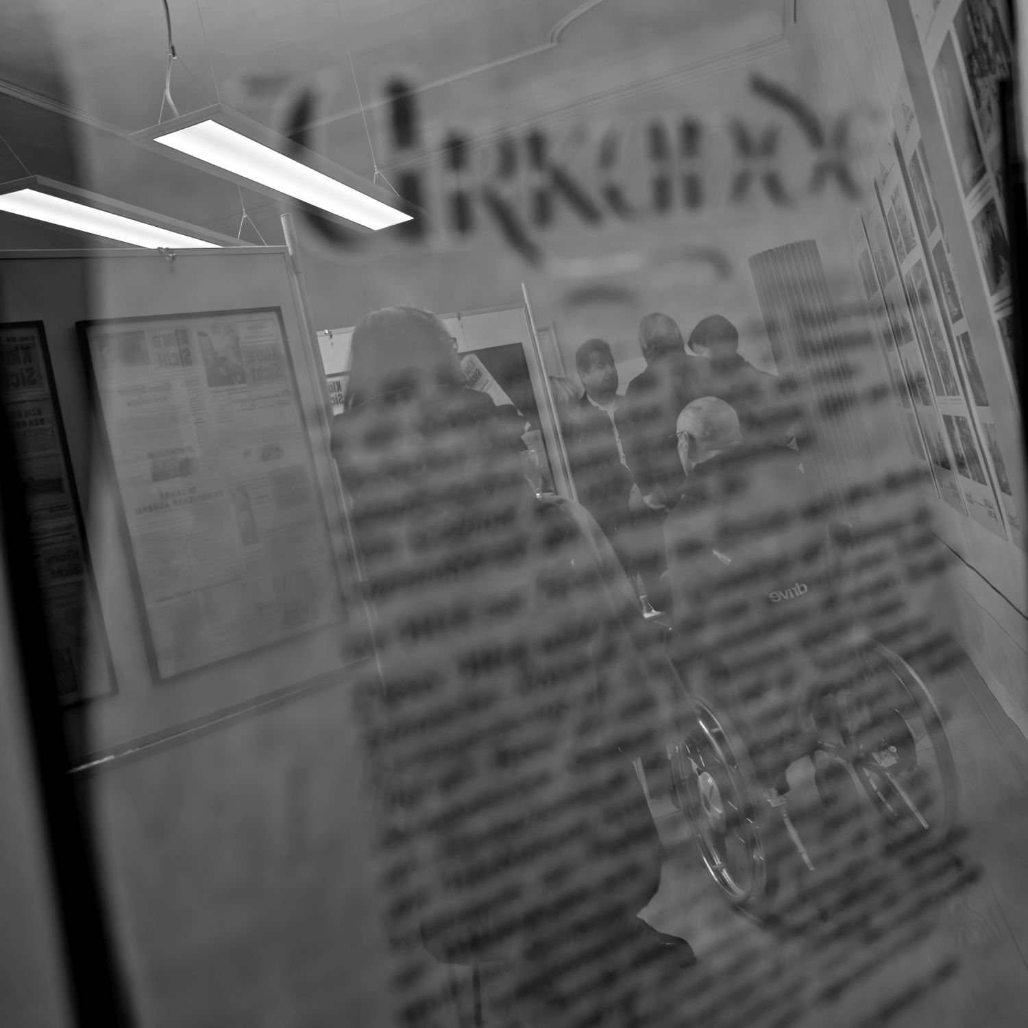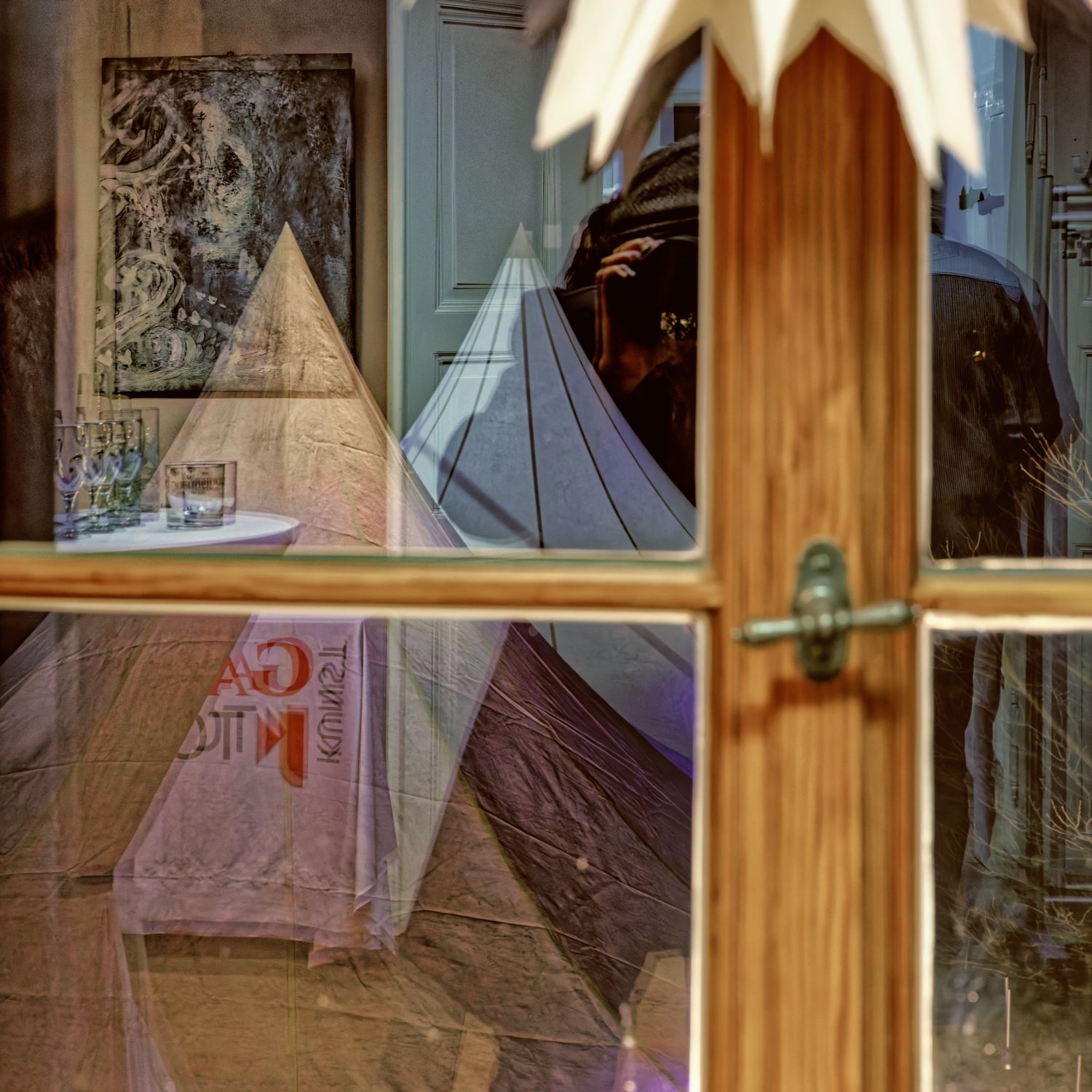 Der Blick in die Vielfalt der Ebenen von Fotografie mit Motiven, Transparenzen und Spiegelungen schließt ein Foto den Spannungsbogen des Abends dieser interessanten Vernissage in Torgau.