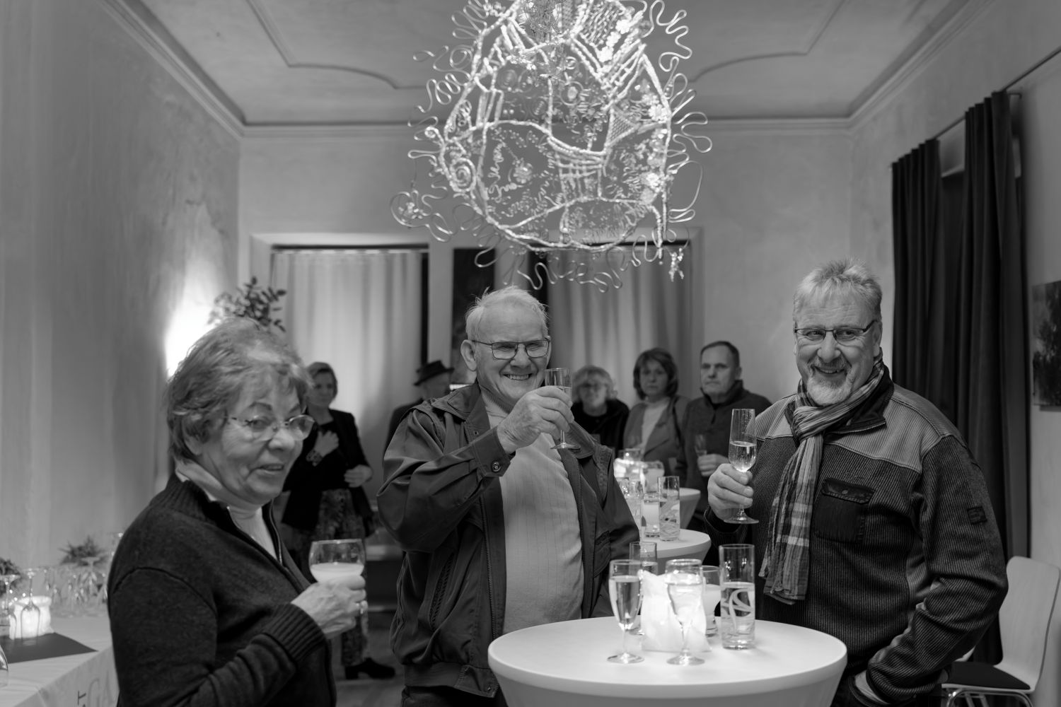 Die Veranstaltung beseht aus zwei Teilen, einem offiziellen Eröffnen im Hof des Hauses, natürlich bei der Jahreszeit im Zelt, und dem nicht minder offiziellen Teil in der Sonderausstellung „2026 – 100 Jahre Glas in Torgau“ in der KunstGalerie selbst.
